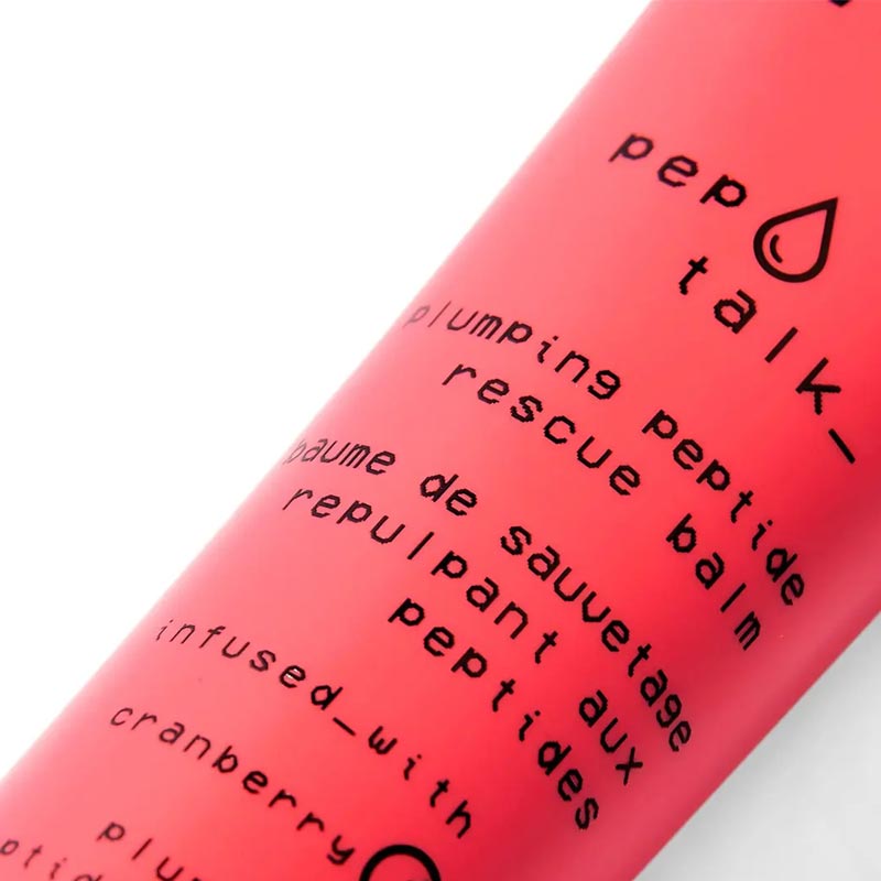 Glow Hub Pep Talk Plumping Peptide Rescue Balm is a smoothing and nourishing lip balm and overnight treatment, with softly plumping peptides to help boost fullness and define contours.
