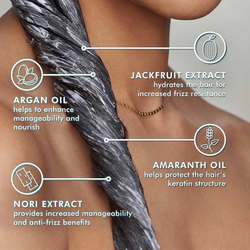 NORI EXTRACT (RED SEAWEED): Highly concentrated amino acids and proteins strengthens hair and restores its vitality for increased manageability, while providing anti-frizz benefits.
