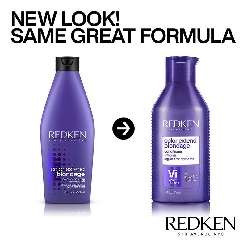 Redken Blondage Conditioner is fortified with Pure Violet Pigment and a Triple Acid Protein Complex. The light purple conditioner helps detangle and smooth processed blonde hair or to condition natural blonde while keeping your colour protected and bright.